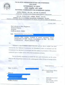 కర్నూలు జిల్లా నందవరం మండలం గురజాల గ్రామస్థుల ఫిర్యాదుకు స్పందించిన జాతీయ ఎస్సీ కమిషన్. ఆ గ్రామంలో అక్రమంగా నిర్మించిన ఐఎంబీ చర్చి, క్రైస్తవ ఆచారాలు పాటిస్తూ కూడా కొందరు ఎస్సీ సర్టిఫికెట్లు కలిగివుండటం, అక్రమ చర్చి విస్తరణలో భాగంగా సమీపంలోని ఉమా రామలింగేశ్వర ఆలయ ఉత్సవాలకు ఆటంకం కలిగించే రీతిలో అక్రమంగా ప్రహారీగోడ నిర్మాణం చేయడం, ఇదేమని ప్రశ్నించిన వారిపై అక్రమంగా ఎస్సీ ఎస్టీ కేసులుంపెట్టడంపై ఏకమైన యావత్ గ్రామస్థులు.. దీనిపై దాదాపు 3 నెలలకు పైగా పోరాటం సాగిస్తున్నారు.
