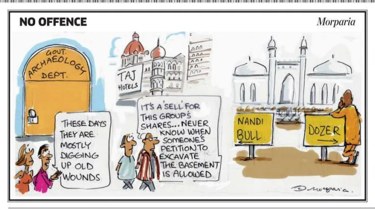 ఎకనామిక్ టైమ్స్ భాభా అటామిక్ రీసెర్చ్ సెంటర్ను శివలింగంగా చిత్రీకరిస్తూ, BOM BHOLENATH అనే శీర్షికతో హిందువులను అపహాస్యం చేస్తూ కార్టూన్ ను ప్రచురించింది. ఆ సంస్థ కాలమ్ లోని మరో కార్టూన్ కూడాచాలా అభ్యంతరంగా ఉంది. తాజ్ మహల్ మూసి ఉన్న గేట్లను తెరవమని అరుస్తున్నట్టు అందులో ఉంది.