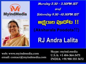Stories of Smt Pothuri VijayaLakshmi – 11th May 2019 Aksharaala Poodota by Rj Lalitha